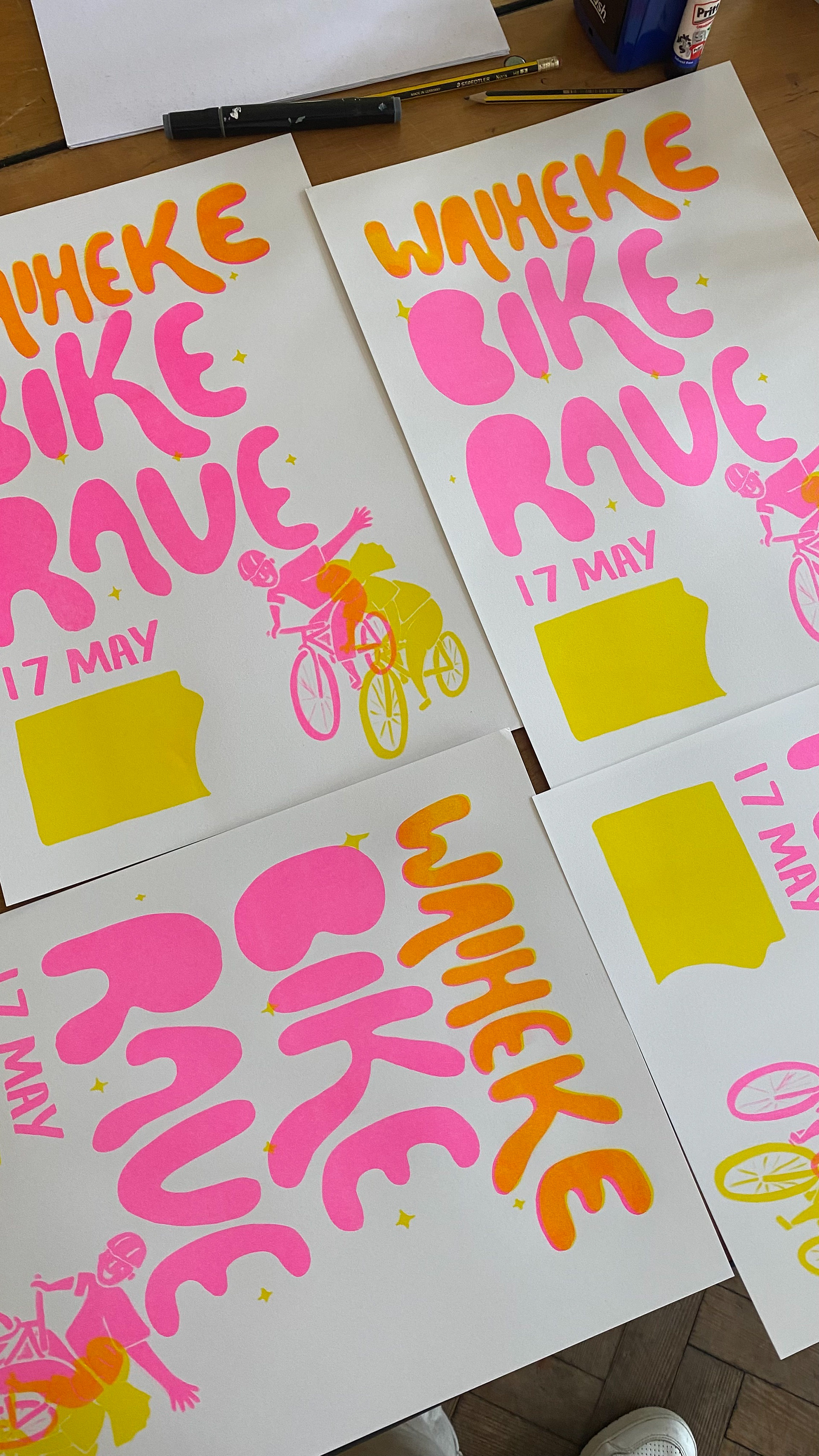 This poster was hand-drawn, photocopied, and printed on a risograph printer to create the vibrant colours and offset colours. It was finished digitally to be printed and shared online.